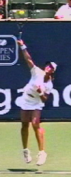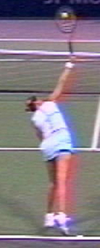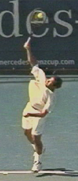 All the top players hit the ball somewhere on the way down. No one in the modern game hits the ball at the top of the toss, and very few ever have. (Click Here to read more about this). Roscoe Tanner is commonly pointed to as an example of a top player who hit the ball at the top. He may be the only one, unless you want to count Kevin Curren, the South African who was in the top ten in 1980's. Goran Ivanisevic is sometimes cited as a modern example of a player who hit the ball at the top, but that's not actually true. As quick as his motion was, he still hit the ball several inches on the way down. (Check it out for yourself in the Stroke Archive. Click Here.) Among current top players, Roddick has one of the lower tosses, but it still drops well over a foot before the contact.