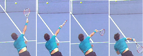 What Brian's work shows - and this is backed up by the video - is that pronation in the technical biomechanical sense isn't a factor in serve location. In fact, Brian has detected little to no independent rotation of the forearm in high level serving. (I'll leave it to him to explain the complexities of that at a later date.) So for the purposes of this article, let's look at the differences in serve location in the technical biomechanical terms.