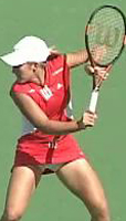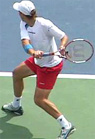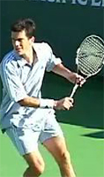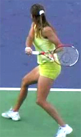 In comparison, a classic grip player like Philippoussis starts straight back, but ends up actually raising the hand much higher at the top of the backswing than Henin-Hardenne. Players like Henman, Blake, and Federer also start straight back, but all end up with lower positions at the top of the motion.