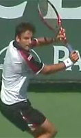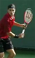 Having said all this, it is definitely true that some extreme players do combine the high hand and racket position. It's just not a universal characteristic of that style as is sometimes argued. The two extreme players with the highest backswing positions are Fernando Gonzales and Tommy Rebredo. Their hands are at about shoulder level, and the racket tips are pointing more or less straight up and down. This places most or all of racket head above head level. Richard Gasquet, another extreme player, also has high racket and hand positions, though probably slightly lower than Rebredo or Gonzales.
