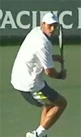 We can see this clearly with Gaston Gaudio, also an extreme grip player, but at the other end of the spectrum from Srichaphan. Notice he has the most body turn, with his shoulders at 45 degrees to the baseline or maybe even a little more, and also the closest hand position. The other players are on a continuum somewhere in between. Again, you can see the range is a mix between the classic and extreme grips.