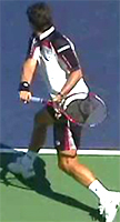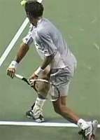 In general though the more extreme players do tend to go further outside. You can see this is the stills of Gaudio, Kuerten, Gonzales, and Robredo. But only Gonzales and Robredo combine this outside position with a super high hand and racket position.