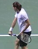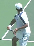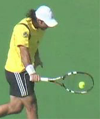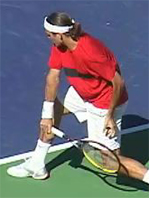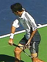 With other players, the knuckle appears that it may be more on the edge between bevel 8 and bevel 1. We can call that grip an 8 1/2 / 8. Players like Richard Gasquet, Fernando Gonzales and Paradorn Srichaphan seem to use this slightly milder version. As I've noted a few times before, the exact positions of our key points are sometimes difficult to nail down even with all the video we have to study.