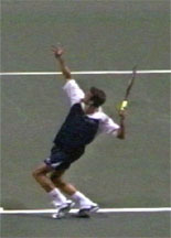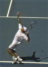 The second reason is that the serve is much easier to film and therefore to analyze. This is because the players serve from set positions on the court. filming for three-dimensional analysis is generally done with fixed cameras that can't pan or zoom to follow the players. The wide range of court movement in groundstrokes and net play makes the other strokes far more difficult to study.