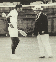 Gonzalez believed that under these circumstances, showing one's emotions was natural and healthy. "For players under pressure," he said, "emotion is a way of stimulating yourself. In tennis, there is no [other] way to do it, and it's unfair to ask a player to hold it in." But Gonzalez's opponents were not always sure he was simply giving himself a pep talk. Rosewall, for instance, said that Gonzalez's whole demeanor on the court exuded a "general air of violence."