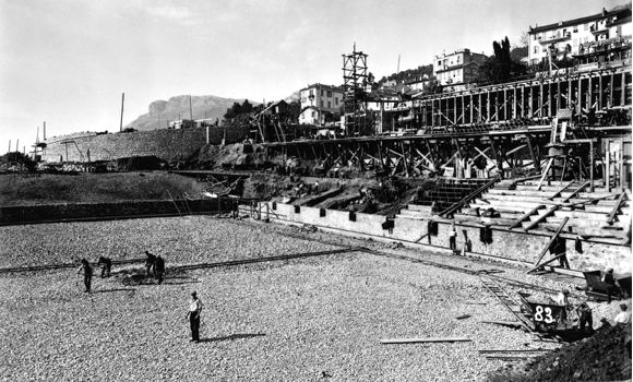 Charles Letrosne, recognized as a standard-setting Art Deco architect, designed the glorious venue, which 1,500 laborers worked continuously for more than six months to complete. The 20 courts, two or three to a level facing the ocean, were arranged on terraces separated by magnificent flowerbeds and cypress trees.