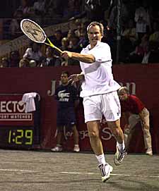 This brings up a point I try to teach juniors: winning tennis is usually boring tennis. To beat someone of equal or greater ability, you must be willing to do whatever it takes over and over again. Too many juniors get caught up thinking they have to beat someone with big winners. The object is to find that small chink and patiently drill at it at like a dentist slowly filling a cavity. And everyone's got some teeth that are weaker than others -- even John McEnroe.