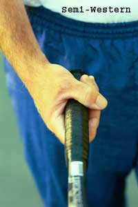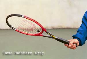 The semi-western forehand grip is very similar in a lot of respects to the extreme western, but has definite advantages over the extreme western. With the hand in a less extreme position getting the racquet head through the ball is much easier and makes for a less wristy shot.