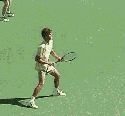 With his Semi-Western grip, Agassi can hit flatter and penetrate the court. |