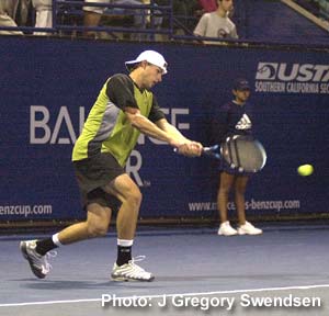 Pros like Roddick spend hours drilling down the line backhands in competitive situations so it's there when needed. |