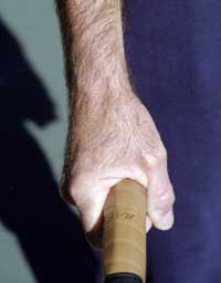 The two viable service grips, the continental (above) and the eastern backhand. |