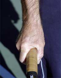 Without a service grip, you're doomed to the "waiter's" delivery. It may work fine when serving martinis, but it won't deliver power and spin. |