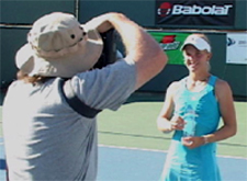Gradually over the course of the first set, however, Lauren started to vary her tactics. More and more she chose to move back in the court, take a little pace off the ball, and loop it back with more air over the net. She seemed to sense that, as good as her groundstrokes were, she just wasn't able to get control of the points or consistently hurt Melanie. In fact Melanie seemed to be feeding off the pace and was just a little more effective in the straight up exchanges.