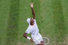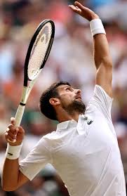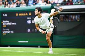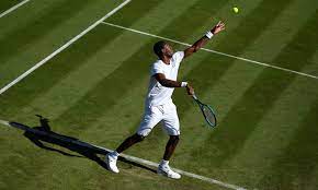 The finish is the conclusion of the serve and should be balanced with good body control. The player should land on the front leg with the scorpion pose. The player should jump over the baseline into the court, indicating a strong weight transfer forward. The head should be level with the eyes fixated on the target and opponent. The trunk should maintain good posture and not collapse. The server should explode up and into the court without fading left or right.