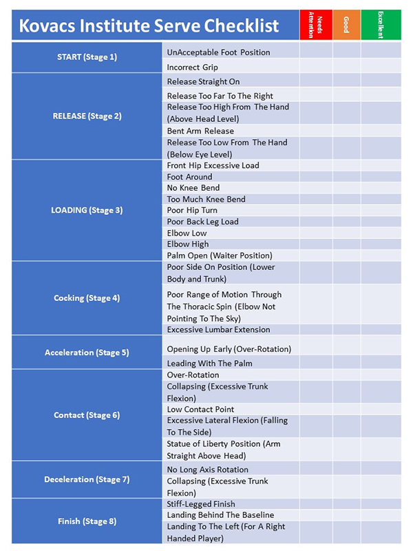 Kovacs Institute Serve Checklist (reprinted with permission from Mark Kovacs)