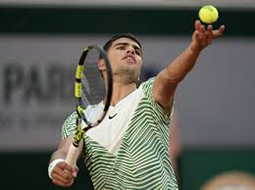 Tossing arm leading; racquet arm lagging. The cobra variation, with the racquet pointed down initially, is also popular on tour.
