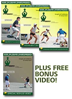 Pro Secrets of Cross TrainingIn Pro Secrets of Mental Toughness, Pat Etcheberry trains you to develop the same conditional skills used by the world's top professional players. Overcome choking, play your best tennis under pressure, become the player you really want to be! Click here for more info |