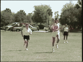 Do the first 200 yard stride at about 50% effort, so that it's nice and relaxed. You should look and feel relaxed and smooth when you run. You should relax your shoulders and also, relax the muscles in your face. Time yourself, but again stay at about 50% and don't push.
