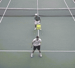 Drill: The partner or coach stands between the service line and the baseline with one ball in each hand and arms extended. He drops either ball and the player has to catch it on the first bounce, toss it back to the coach, return to the starting position, and repeat.