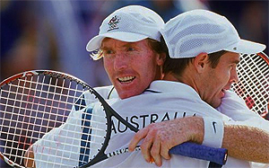Many observers believed that Mark Woodforde's open string pattern gave him a string advantage. |