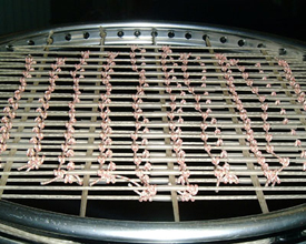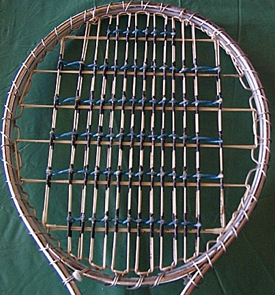 Half the cross strings, but twice the mains, with no interlacing, lashed together at multiple points, and covered with tubing at the intersections. |