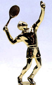 Most people probably know that the trophy position is called the trophy position because it's the position of most tennis player figurines on top of tennis trophies. Usually, the racket arm is bent at a right angle at the elbow.