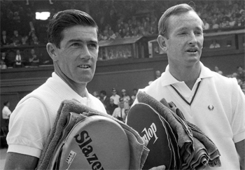 As a junior player, Pete Sampras switched from a two-handed to a one-handed backhand, starting with a grip that Don Budge demonstrated to Sampras's coach at the time, Pete Fischer. When Sampras was 12, Fischer showed him 16-millimeter black-and-white films of Rod Laver in the 1960s. Together they developed Pete's game based on that type of attacking style, which they believed was the key to winning Wimbledon.