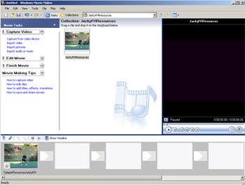 If you are on Mac, you have it very easy from here on out. All Mac's come with a great, great video edit program called "i movie." So just plug your camera into your Mac with the firewire cable and open "i movie." The program allows you to control the camera. Basically you get the tape running, and the video image appears in the computer viewing movie. Just click on Import at the start of the stroke you want, and then click again at the end. You then get the clip over on the shelf at the right.
