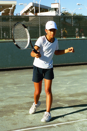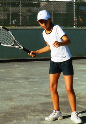 Over the years, Welby's students were easily recognized by the fluid classical style and all court play that were hallmark's of his teaching. He is shown here with Katarina and Marina Raiscevic, two successful Southern California junior players he developed who prove that his distinctive style is alive and well in the new millennium.