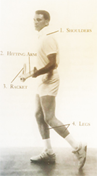 This was a model I had revised and improved substantially. In the new model, the body turn was much stronger. This had to do with what I had discovered about the role of the opposite arm. In 1997 we did the first high speed filming ever in live professional match play.