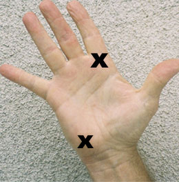 We created this new system by numbering the bevels on the racket handle, and then identifying two key points on the hand. The bevels were numbered 1 to 8. The key points on the hand were the base of the index knuckle and the center of the heel pad.