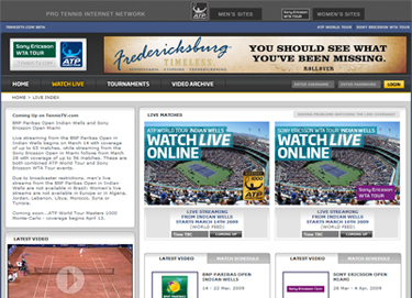 I am really excited to announce a third major partnership for Tennisplayer! This time with TennisTV.com. (Click Here.) The deal is simple. TennisTV and its management is giving us the continuing rights for high speed filming of live match play. In turn, we will be promoting a new way to watch tennis matches online that is perfect for hard core players and fans - our subscribers. You may not of heard of it-yet--but TennisTV is easily the leading site for watching pro matches online, and is now the official streaming video outlet for both the men's and the women's tours. So that makes an awesome trio for us. Arguably we are working with the three most important media outlets in tennis: Tennis.com (Click Here), the TennisChannel (Click Here) and now TennisTV.com as well. What exactly is it? TennisTV is an amazing, in depth resource that allows you to follow 35 tournaments live all year from around the world, including the entire Masters Series. It's the piece that was previously missing if you really wanted follow the tour closely, and have been continually frustrated by the limited coverage from "big" media. Take Indian Wells for example. TennisChannel is basically covering every minute of the first weekend. Fantastic. But after that, you have to take your chances with Fox Sports which means much more limited coverage and also time shifting rather than live broadcast.