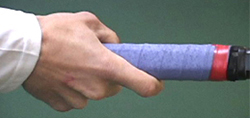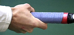 Extreme Western Grip When Building a Spanish style forehand, a full, under the handle western grip can be counterproductive. You don't see this grip at the pro level. Even players such as Nadal and Novak Djokovic are using some version of a semi-western grip with the hand still at least partially behind the handle. I believe that, particularly initially, the emphasis should be on a relatively conservative grip. These pictures from the first article again show the range of grips that I consider to be effective, basically from a modified eastern to a strong semi-western. But I also believe that the focus should be on developing whip and racket speed, utilizing the whole kinetic chain of the body and maximizing upper arm, forearm, and hand speed in developing the swing.