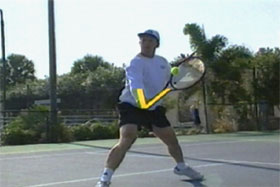 The backhand volley begins with a hip and shoulder turn.