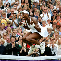 The middle of the Slam season is here and so far the year has given us some of the real good stuff! Score one for being happy and excited on a tennis court (Rafa and Venus), all-court mastery (Justine and Roger) and valiant efforts by media darlings (Davenport, Sharapova and, now, Andy Roddick).