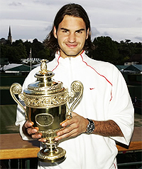 After the loss I decided that it was better to stay in Toronto and get some solid practice with the main draw players, stay in a 5-star hotel, and eat the great buffet spreads at the tournament. The day after the loss was a Sunday afternoon, and all was quiet on the grounds. I happened to be in the player's locker room with Joseph. It was almost empty with that quiet storm feel before the start of the main draw event. There was only one other player sitting on the other side of the room, his Wilson racquet bag lying on the floor next to him. I looked across the room and saw the one, the only, Roger Federer. Surprisingly, there was no entourage to be found - no coach, no fitness trainer, no physio, no girlfriend - just Roger, his racquet bag, and his unmistakable quiet confidence. Roger had just won his second Wimbledon, beating Andy Roddick in four tough sets. It was his third grand slam victory and his second Wimbledon. He had taken three weeks off after his most recent triumph and had just flown on his own to Toronto to prepare for this event.