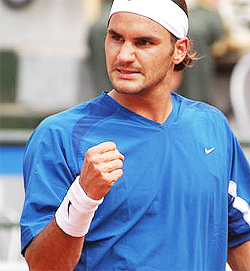When I walked out onto the court, the tennis fans that had gathered around were looking at me. I could see them thinking, "Who is this guy? Maybe he is famous, but I don't recognize him." The ponytail was making them wonder, but they probably wished that I was Rafter or Nalbandian. Somehow these fans knew Roger was preparing to practice on this particular back court. The buzz was apparent as they stood outside the court with pens, paper, and big yellow tennis balls in place. Without bleachers to support the crowd, it was feeling more and more like a mob scene. They were eager for King Fed's arrival. Then Roger strolled out with his racquet bag slung over his back, a strap over each shoulder—again no coach, no physio, and no girlfriend. Despite his status, there was an unassuming quality about him. You did not get the feeling he was interested in attracting attention to himself like other superstars. Roger found his way through the maze of tennis fans, opened the small gate to the practice court, dropped his racquet bag down, and we exchanged "hellos."