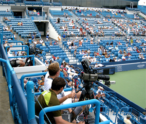 The Cincy Personality Every tournament has a personality, and I have to say that Cincinnati's is definitely unique. The main stadium is much smaller and more intimate than Indian Wells. There is a second smaller stadium, and a third sort of stadium. But the outer courts aren't set up the way they are in the desert or Miami. They have only 5 courts maximum in play at a given time. But from our point of view the main stadium is fantastic because of the vantage points. This is our third year filming there, and the second year with our new high speed camera, and we're very excited about the footage we are generating for our new Stroke Archive. You've seen some small segments of that footage already in the Forum and there is a lot more to come. As I have written before, that camera is the same one used at the Super Bowl and other major sports for super slow motion replays.