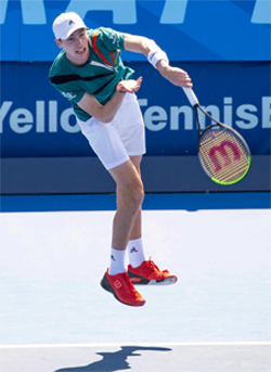 He had some trouble with Stephen Koslov, a wily young American and a fighter in his own right, losing the first set in a breaker but then basically smoking him 3 and 1. Then he beat another young player I was interested in, the Serbian Kecmanović, again in straight sets.