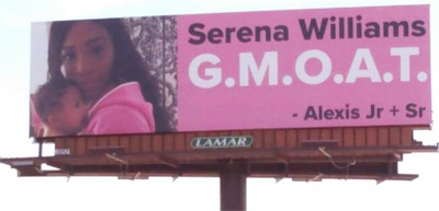 She is already getting some interesting publicity from her husband, wealthy investor Alexis Ohanian, who put up a series of bill boards along the interstate, proclaiming Serena the world's greatest mom.