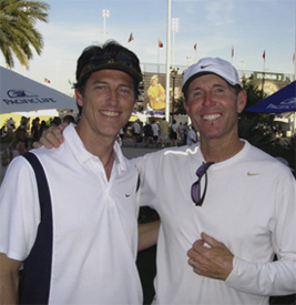 And one powerful way to facilitate this is to watch the phenomenal stroke production of the world's best players at close range at one of the world's premier pro events. It also doesn't hurt if you get to stay at a trendy boutique resort at a discount price. Then you back that up with some focused technical teaching from some of the country's most knowledgeable teaching pros. Speaking of which, I was phenomenally lucky to get Scott Murphy, Dave Hagler, and Giancarlo Andreani--names that are probably familiar to Tennisplayer subscribers--to help me staff the clinic. I thought the 4 of us made a really well-balanced team. The on court chemistry was great, with a lot of great ball striking, and some pretty good banter as well.