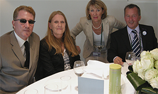 You walk up the stairs. There is a cafe, and an outdoor seating area, with, yes, grass. And an overlook to the outer courts. And a bridge that takes you to a private entrance to Center Court. You can drink beer, or Pimm's Cups, or take high tea, or just sit there and observe the privileged members of the English tennis aristocracy. And they are drinking all three in copious amounts, I can assure you. Lunch Time And one more amazing detail. The LTA annual President's lunch. I got to attend as Nicola's guest. Sweating and trying to make small talk with the 50 or so most important people in English tennis, including Roger Draper, the man in charge of the whole player development frenzy. By the way don't wear a black tie in England like I did at the lunch. Unless you are in morning for loved ones. Cool in the states, but a cause for some raised eyebrows at the All England Club. Despite the fashion faux pas, I still ended up sitting with Nicola at a table with the future president of the LTA, Derek Howarth and his wife. And like I said, there is an incredible passion to produce great players in Britain. You could feel it in that room. I'll leave the analysis and the evaluation of the results to others. I'll just applaud the effort.