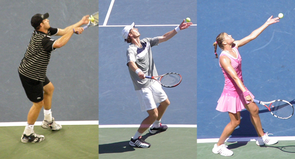 The Three Rhythms (left to right): Andy Roddick in the abbreviated rhythm, Andy Murray in the classic rhythm and finally Dinara Safina in the staggered rhythm.